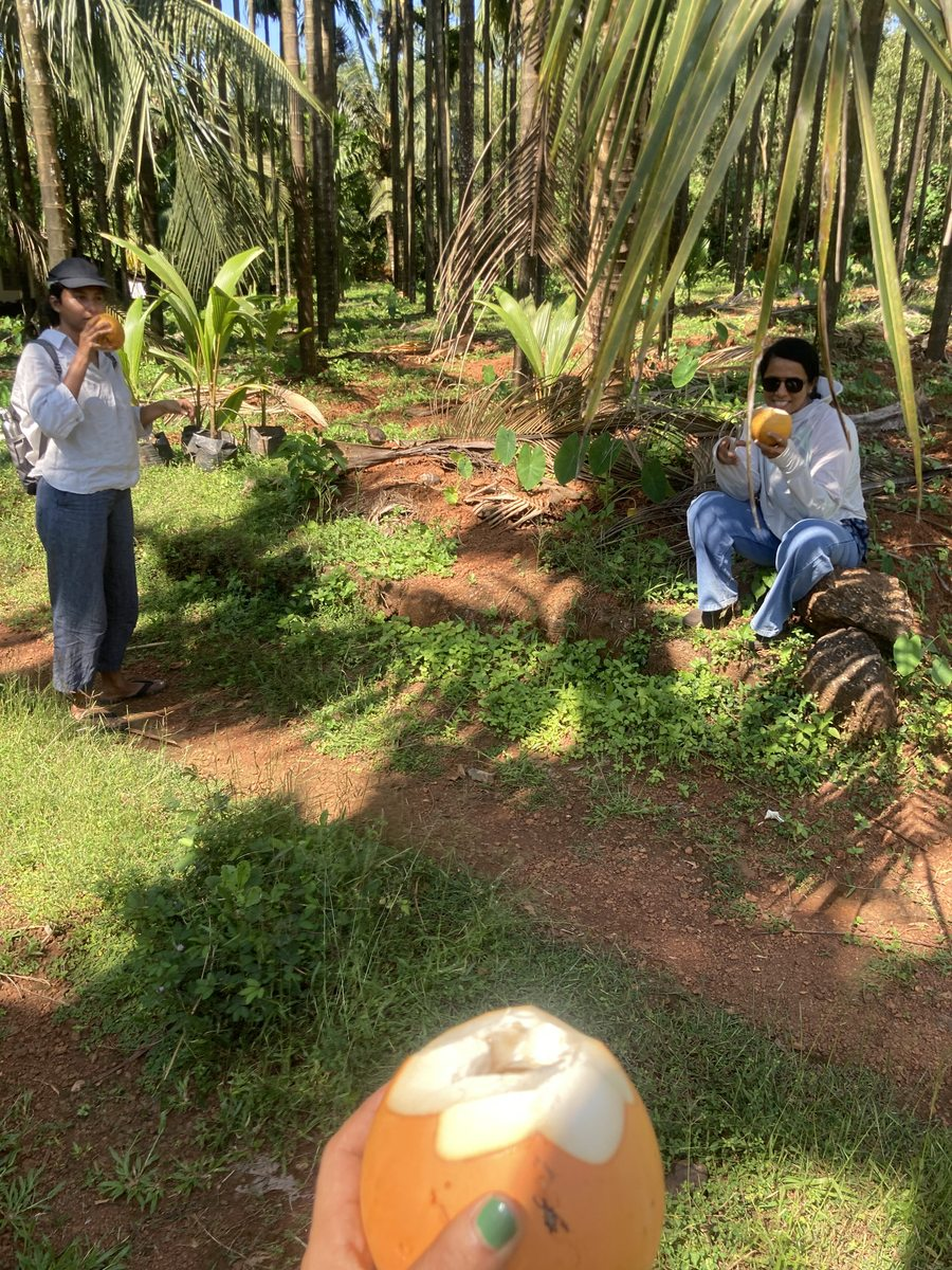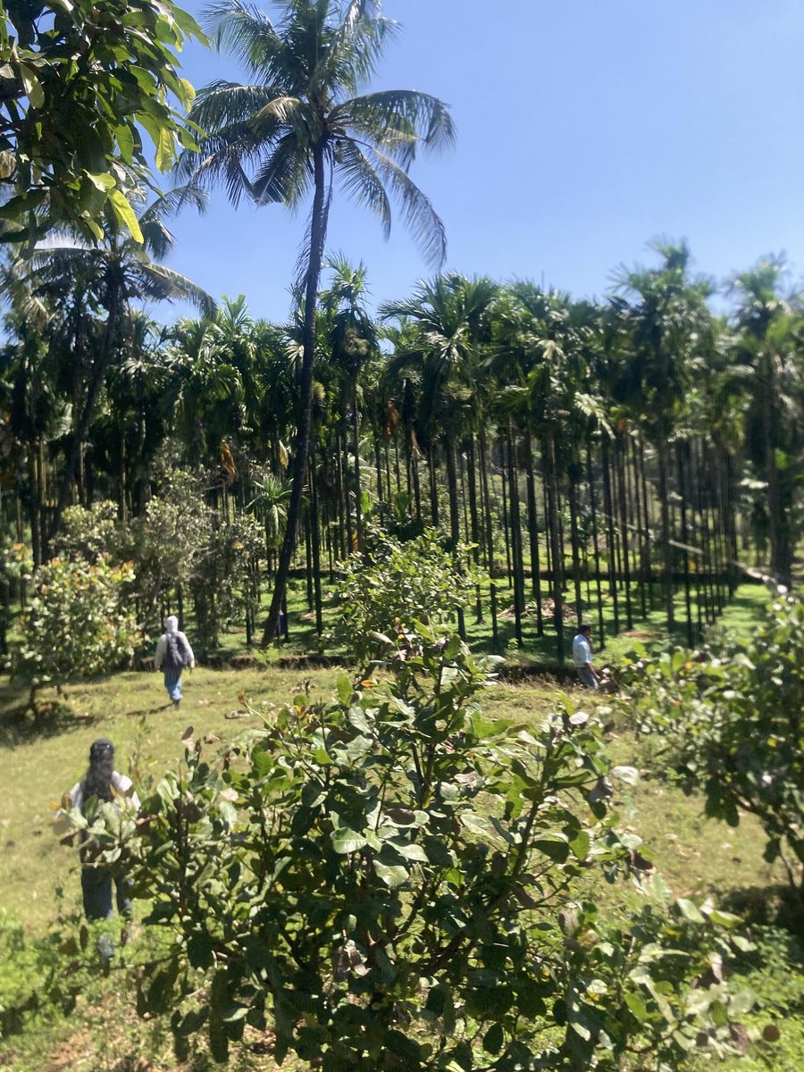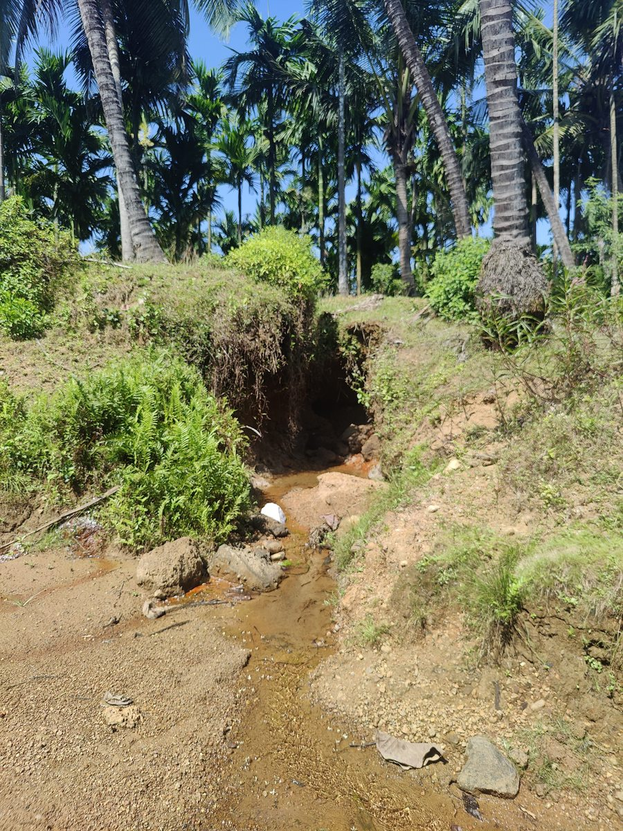 We parked next to Rajesh’s sister’s house with a compound wall along a path going through arecanut farms, owned by Rajesh. He took us towards the opposite side to show the work-in-progress of a public pond.