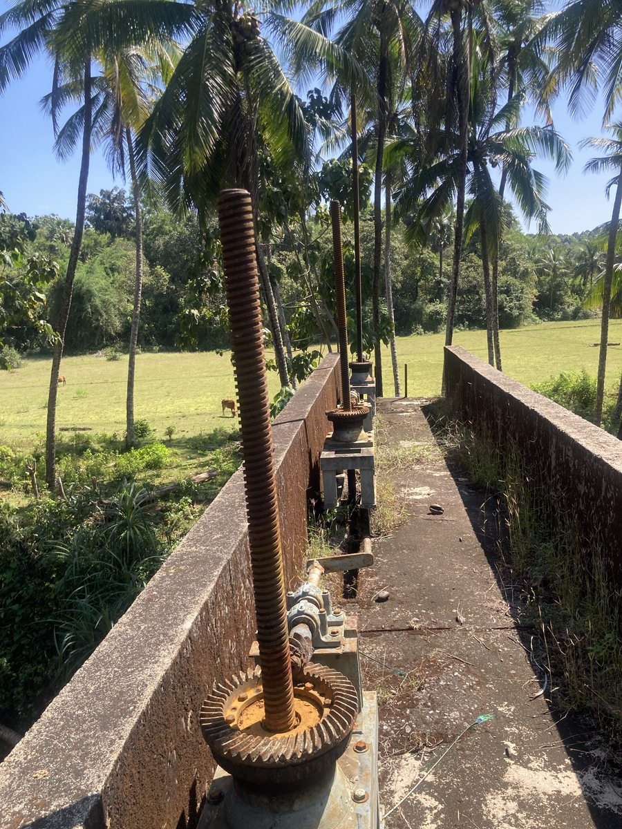 Just south to the Dollabe paare is the lift point of the Sowparnika LIS. The water is pumped from Sowparnika by the pump house to the lift point through an underground pipeline. At the lift point, two sluice gates enable control of water flow into two underground pipelines. The eastern one cuts across Aluru village to feed into ತೋಡ್ thods taking the water across agricultural fields of Aluru. The southern one continues to Nada, Noojadi, and Hakladi.