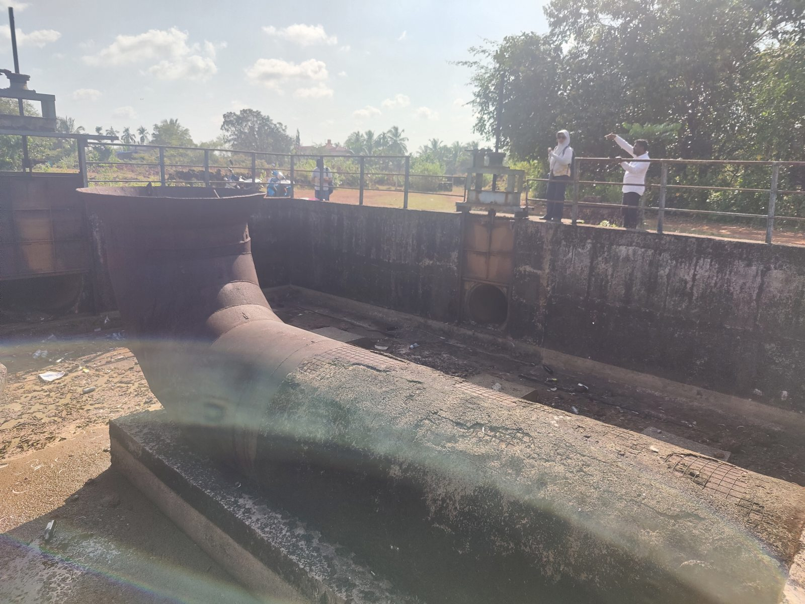 When asked why there is no water being pumped currently, Prashant Kulal told us that as we visited just after the monsoons the fields have enough water. Water from Sowparnika is required when rain water is not enough or has dried up in the catchment ponds etc. He shared that the condition is assessed by the Village Water and Sanitation Committee, which then requests the Irrigation department officials to release water as per the needs of the village.