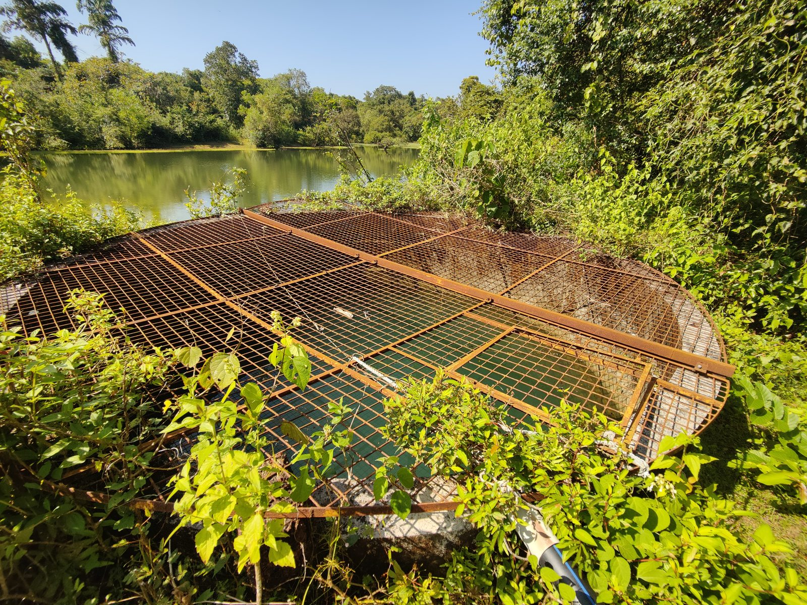 Prashant Kulal took us towards slightly northwest from the Navagrama Colony check-dam, to Haratatti Kere. We had already mapped its location and outlines on OSM in the morning. The kere is located amidst a ಪಾರೆ, Paare, surrounded by reserve forest. The water body is owned and maintained by the forest department and is not used for any irrigation or other forms of human consumption.