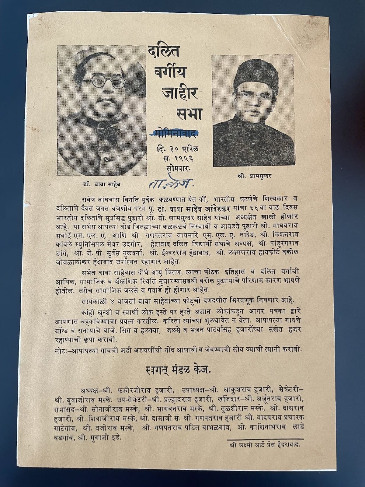 The collections represent the political leaders, grassroots workers, activists and social justice crusaders of depressed class communities in Deccan. Making of such a collection is particularly significant as it addresses the urgent need to preserve the works of B. Shyam Sundar, whose contributions have largely faded from public memory. Despite his pivotal role in depressed class movements of the region, his writings and collections remain scattered and inaccessible in public. Our archival engagement aims to systematically document his extensive body of works spanning four decades, ensuring its preservation and further circulations. In the future, we will carryout survey and catalog of place-based archival collections pertaining to a series of movements led by the depressed classes (Dalits, Bahujans, Minorities and Adivasis) demanding land reforms, right to education, dignity of life and right to remain free from the caste-based discrimination such as untouchability between 1940 to 1980s.