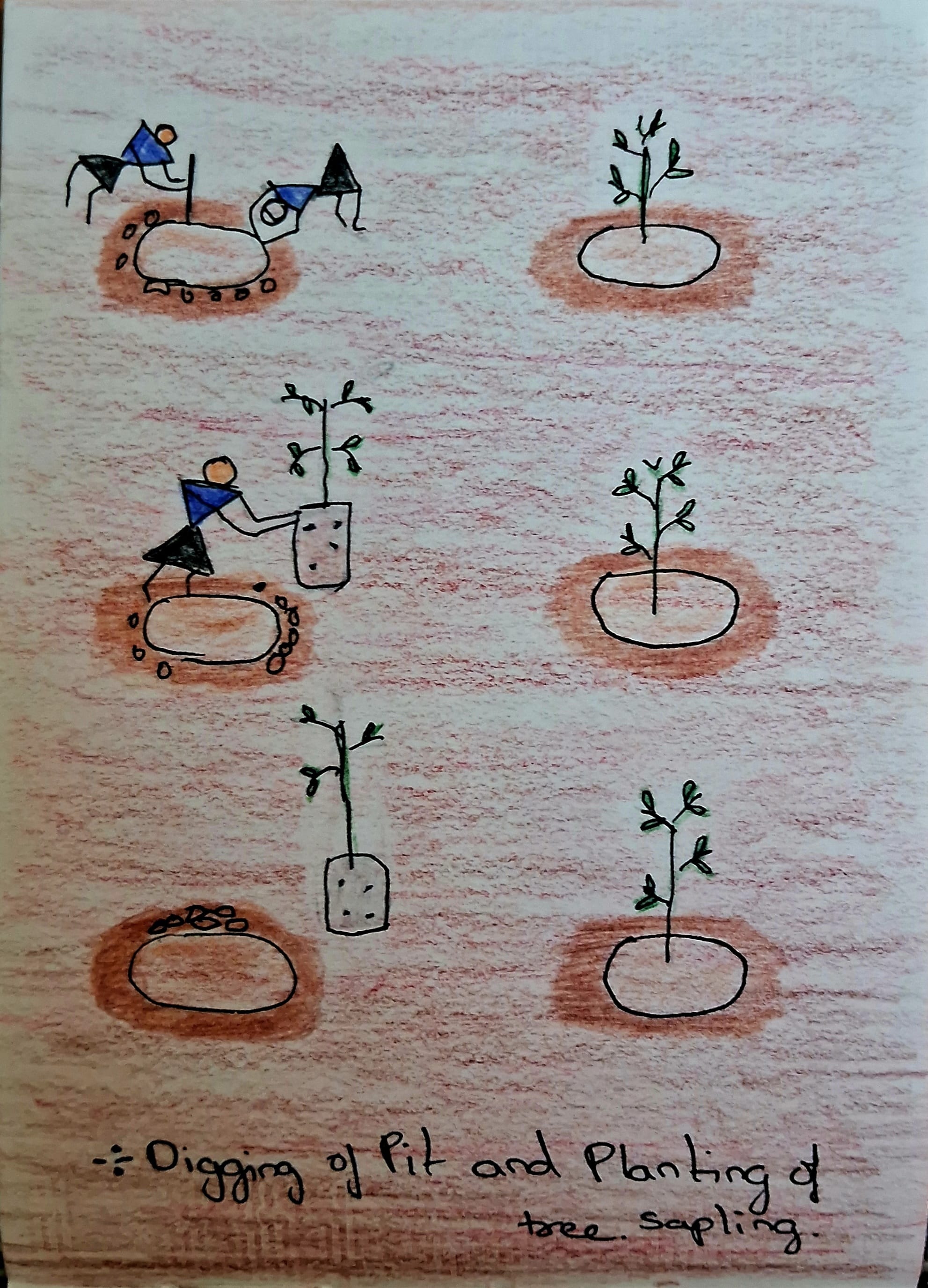 On enquiring about the layout/markout of the farm, he showed a handmade sketch done by him before planting of the saplings. Layout/markout is important and a difficult task from my understanding. I really liked Raj’s ability to try and his self confidence nature. The sketch contained pit location and distance between plant saplings from row to row and column to column, it also contained no of saplings to be planted and sequence of saplings. He mentions all this was on trial basis, have been improvising over the years based on his observations and self learning. On probing on labourers used along this while. He and his father comments that all work is done by family members. If we hire people for work, the work will not happen in desired way. So, from last four years no workers were hired. Now we are experienced in pitting, planting and maintenance of farm. This experience will be used in establishing another farm, adjacent to his older farm, Raj mentions.